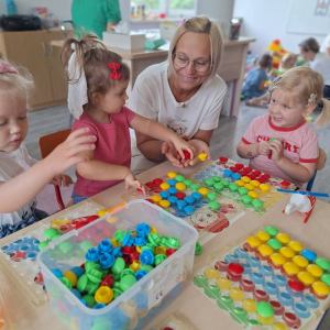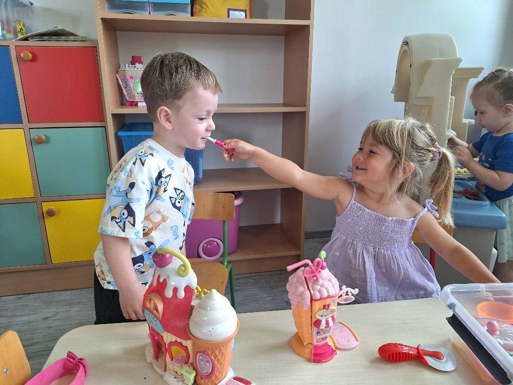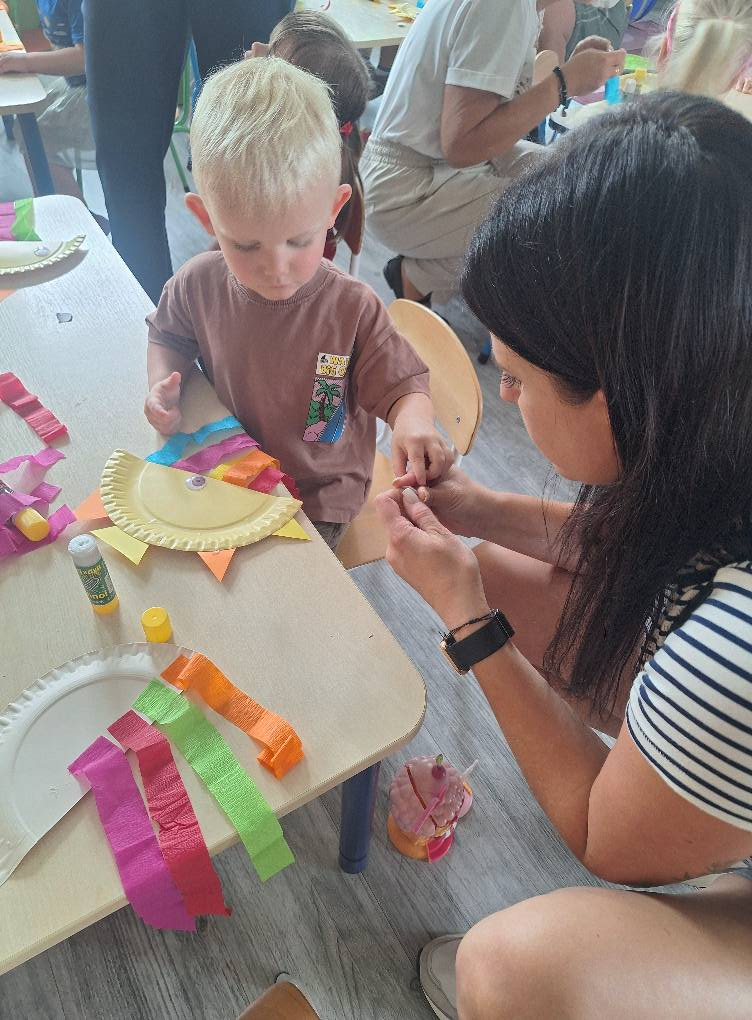 Dzieciaki miały okazję zintegrować się podczas wspólnych zabaw, zjeść pyszne śniadanko, pobawić się w naszym ogrodzie przedszkolnym oraz stworzyć swoją pierwszą pracę plastyczną! To był świetny początek naszej wspólnej przygody!