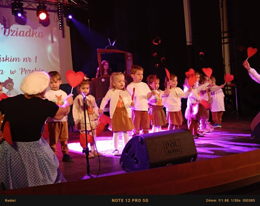 21 stycznia 2026 r. nasze przedszkolaki wystąpiły z okazji Dnia Babci i Dziadka na dużej scenie w MOK Poręba. To wyjątkowe wydarzenie było dla dzieci ogromnym przeżyciem i powodem do dumy. Z wielkim zaangażowaniem zaprezentowały przygotowany program artystyczny – wiersze, piosenki oraz krótkie inscenizacje, wyrażając w ten sposób swoją miłość, wdzięczność i szacunek dla ukochanych Babć i Dziadków. Występy dostarczyły wielu wzruszeń i radości. Dziękujemy wszystkim za obecność oraz wspólne świętowanie tego pięknego, rodzinnego dnia.