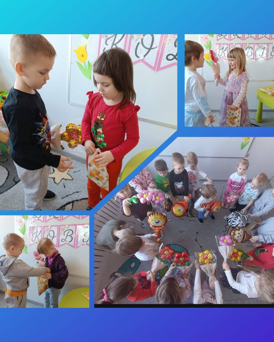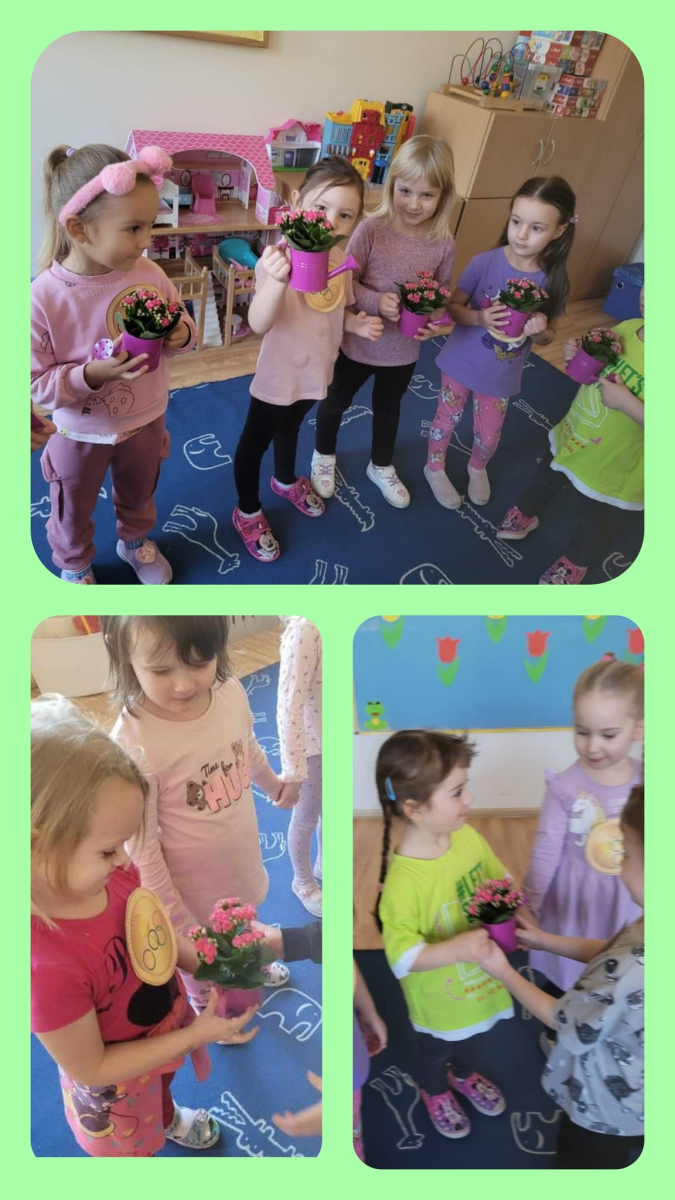 Dzisiejszy dzień w Uszatku był bardzo radosny, ponieważ świętowaliśmy Dzień Kobiet. Chłopcy spisali się na medal – złożyli dziewczynkom oraz paniom serdeczne życzenia, wręczyli drobne upominki i piękne kwiaty. Niektórym małym kobietkom udało się nawet odwiedzić przedszkolny salon piękności. Nie zabrakło uśmiechów, miłej atmosfery oraz wspólnego świętowania. Można śmiało powiedzieć, że w Uszatku było dziś bardzo kobieco!