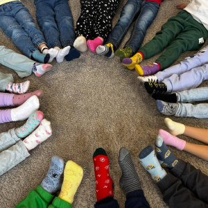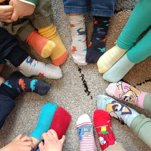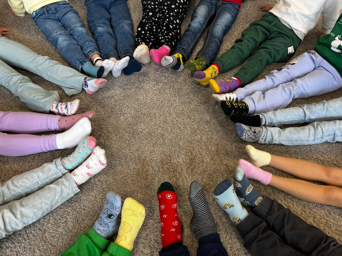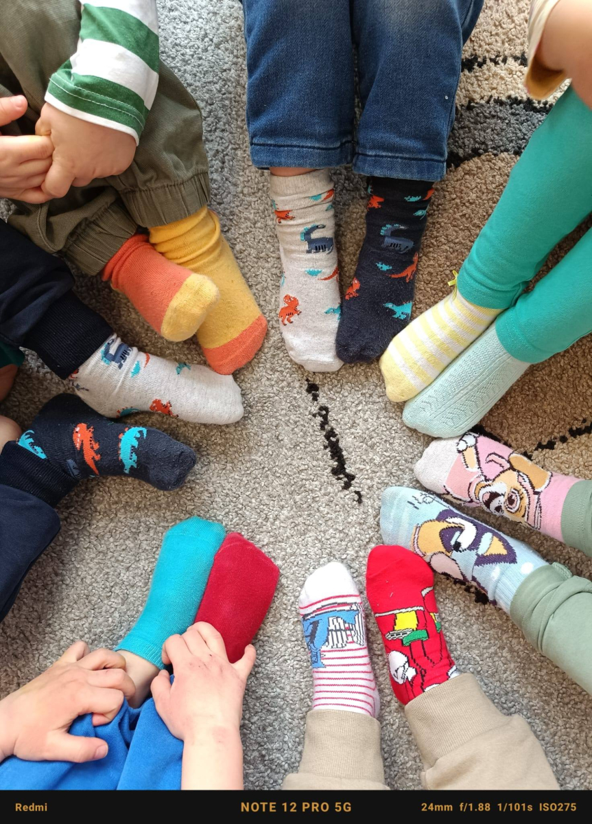 Dzień Kolorowej Skarpetki, czyli Światowy Dzień Zespołu Downa, obchodzony 21 marca, był w naszym przedszkolu okazją do rozmów o akceptacji i różnorodności. Dzieci założyły kolorowe skarpetki nie do pary, pokazując w ten sposób, że każdy z nas jest wyjątkowy. Poprzez wspólne zabawy i rozmowy uczyły się szacunku, empatii i otwartości na innych.