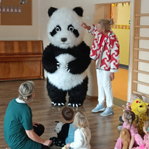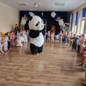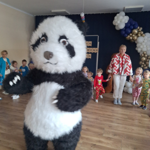 Miś Panda szybko skradł serca wszystkich dzieci — wspólnie tańczyli, bawili się i tworzyli radosną atmosferę.
