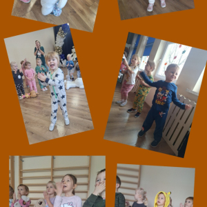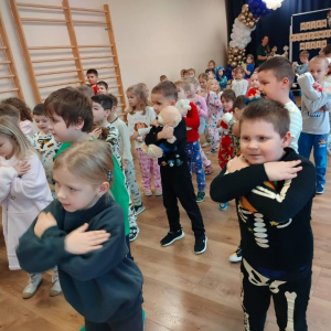 Dzieci przyszły w wygodnych, kolorowych piżamkach, które od razu wprowadziły swobodny i wesoły nastrój.