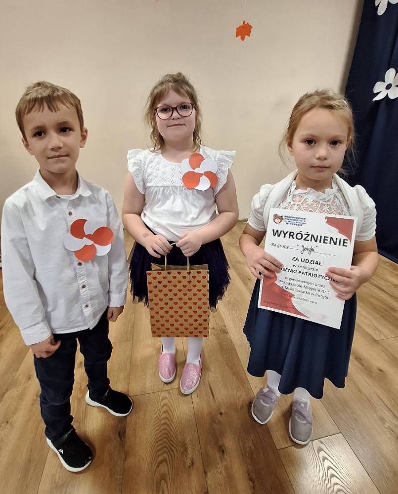 Każda grupa zaprezentowała pięknie przygotowaną piosenkę o tematyce patriotycznej. Przedszkolaki wyglądały niezwykle elegancko i z dumą śpiewały o naszej Ojczyźnie. Nie było przegranych – wszyscy zasługują na ogromne brawa!