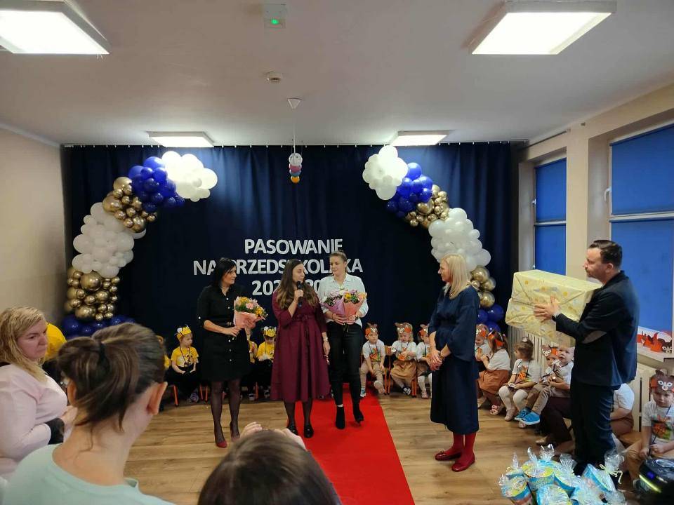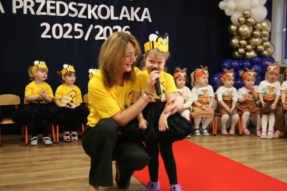 21 listopada 2025 r. dzieci z grup Pszczółki i Kangurki zostały uroczyście przyjęte do naszej przedszkolnej społeczności. Uroczystość rozpoczęła Pani Dyrektor, witając zaproszonych gości: