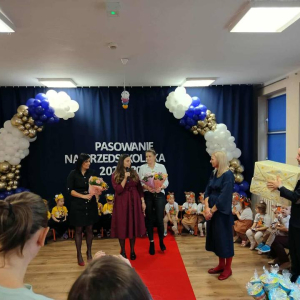 Następnie Pani Dyrektor dokonała uroczystego pasowania na przedszkolaka.