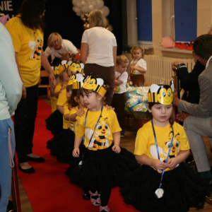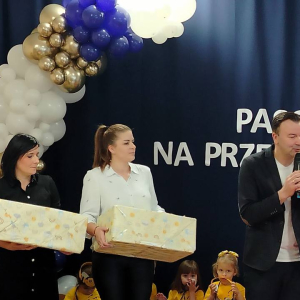 Mali artyści zaprezentowali piękny program artystyczny – piosenki, tańce i wierszyki przygotowane specjalnie na tę okazję. Po występach dzieci złożyły uroczystą obietnicę, że będą zgodnie się bawić, przychodzić do przedszkola z uśmiechem, słuchać pań i pomagać kolegom.