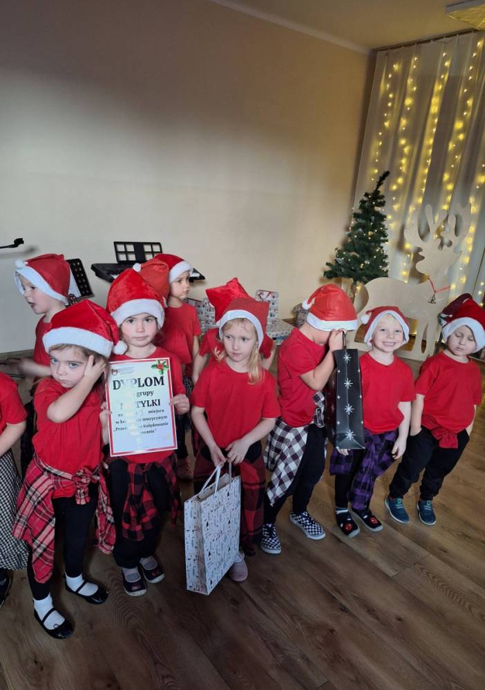 19.12.2025 r. w naszym przedszkolu odbył się konkurs muzyczny „Przedszkolne kolędowanie i tańcowanie”. Dzieci miały za zadanie zaprezentować piosenkę lub taniec o tematyce świątecznej – i zrobiły to na sto różnych sposobów!