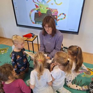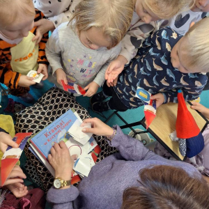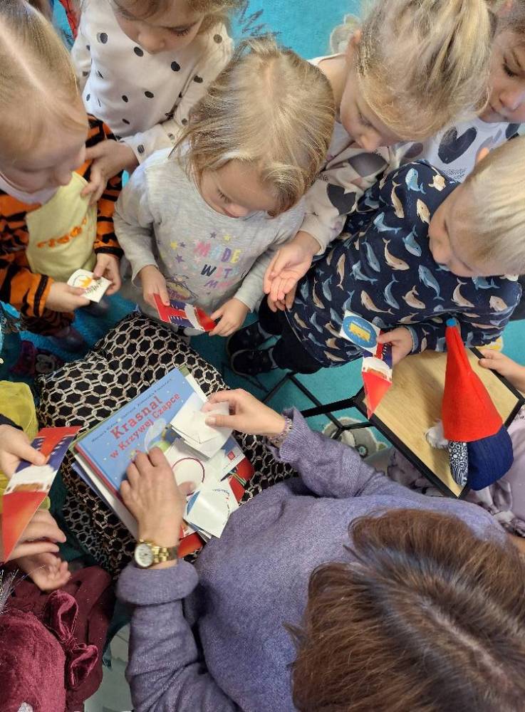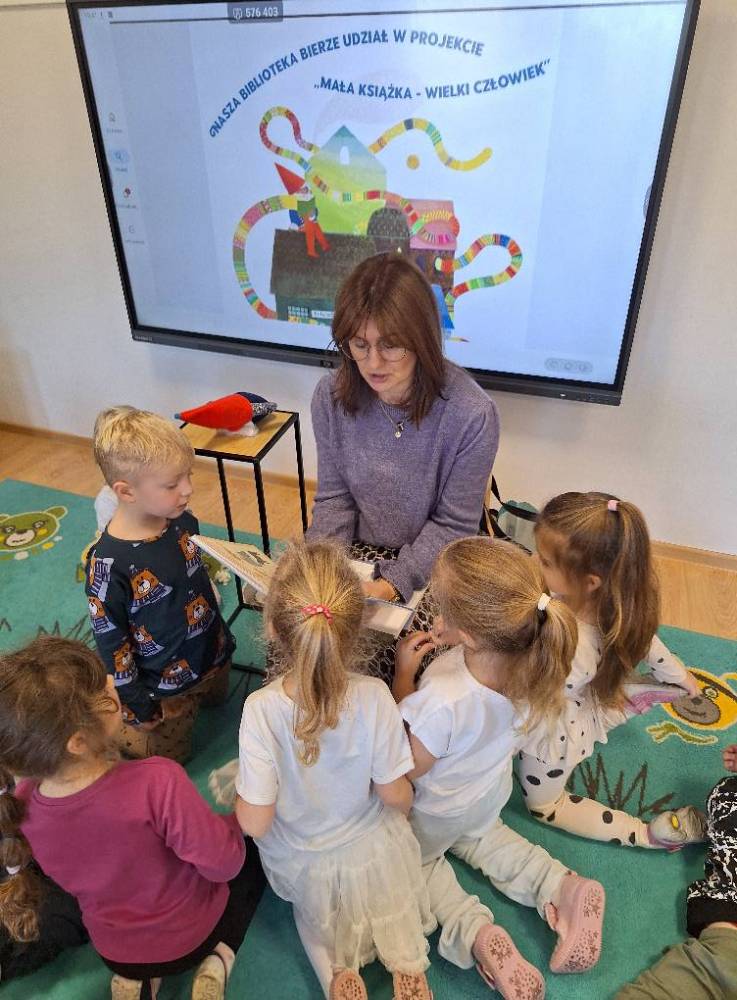 6 listopada odwiedziła nas Pani Lucyna z Miejskiej Biblioteki Publicznej w Porębie. Przyszła do nas w ramach projektu, realizowanego przez bibliotekę „Mała książka – wielki człowiek”, aby poczytać naszym przedszkolakom bajki i zachęcić je do odwiedzania biblioteki. Dzieci z grup 3- i 4-latków z zaciekawieniem słuchały opowieści, przenosząc się do świata pełnego przygód. Nie zabrakło też rozmów o książkach i o tym, jak fajnie jest zostać małym czytelnikiem! Dziękujemy Pani Lucynie za spotkanie i ciepłe słowa, i zapraszamy ponownie.