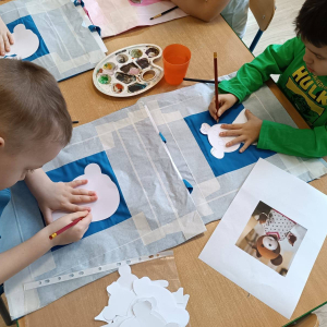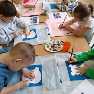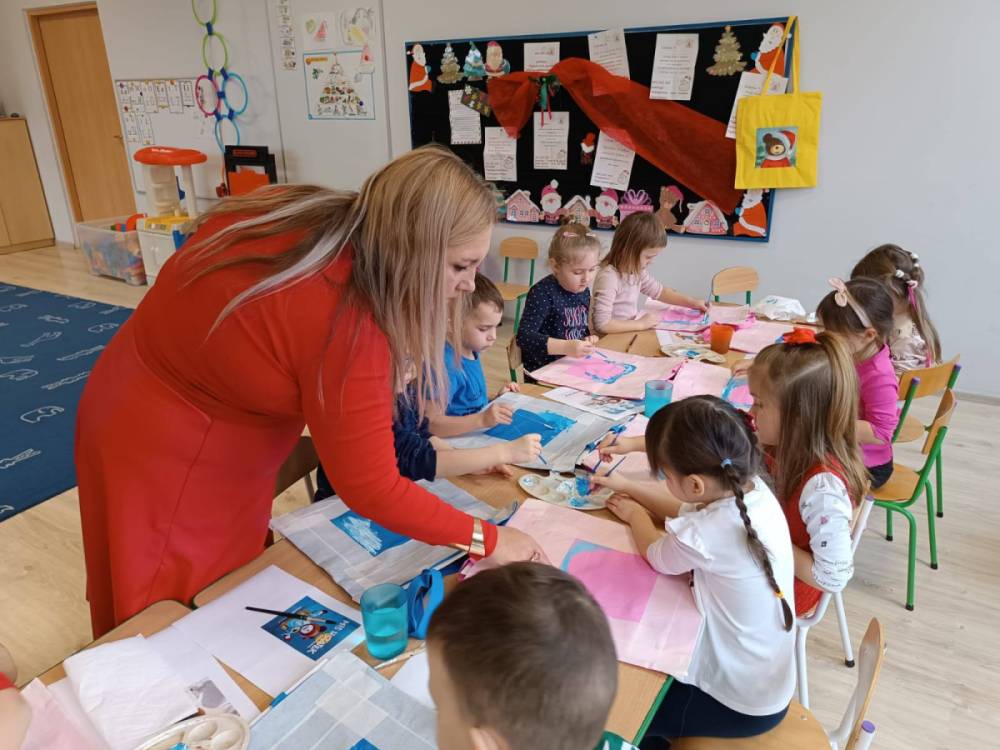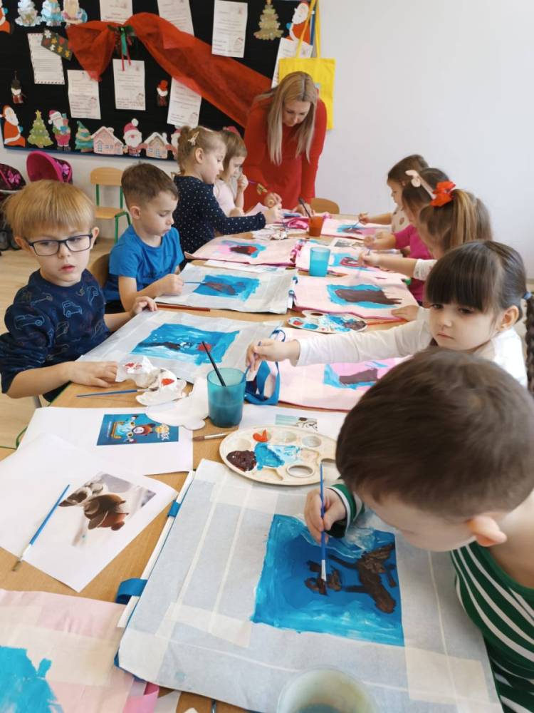 11.12.2025 r. dzieci z grupy „Kaczuszki” wzięły udział w świątecznych warsztatach plastycznych z Panią Kasią z pracowni artystycznej "Motylkowo", działającej przy MOK Poręba. Pod jej opieką przedszkolaki tworzyły świąteczne prace z motywem Misia Uszatka. Było twórczo, radośnie, a efektem są naprawdę piękne, kolorowe prace. Dziękujemy Pani Kasi za spotkanie i wspólną zabawę!