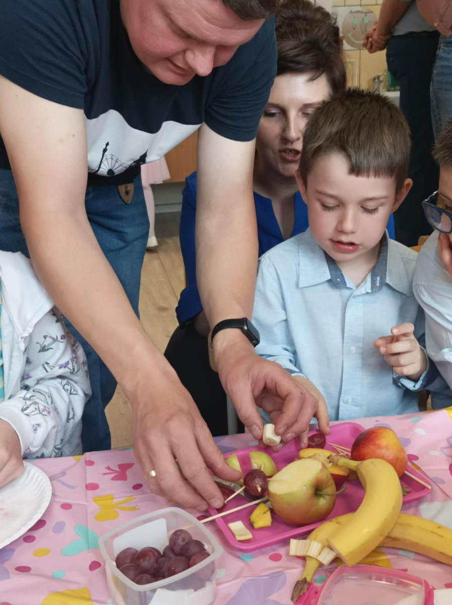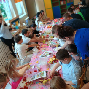 Święto Mamy i Taty w Uszatku to bardzo ważne święto. Były wiersze, piosenki i tańce – mali artyści dali z siebie wszystko, a rodzice podziwiali swoje dzieci i robili zdjęcia jak paparazzi. Ale to nie wszystko! Rodzice z dzieciakami ruszyli do wspólnej zabawy – było radośnie, głośno i baaaardzo wesoło. Na warsztatach kulinarnych powstały prawdziwe dzieła sztuki (niektóre nawet dało się zjeść!), a przy stolikach rękodzielniczych tworzono drzewka szczęścia – takie, co nie trzeba podlewać i zawsze mają liście. Nie zabrakło sportowych zmagań. A po tylu atrakcjach przyszedł czas na coś dla ciała – ognisko i kiełbaski, które smakowały jak z wakacji u babci. Było ciepło, radośnie i rodzinnie. Takie dni powinny być co tydzień – może poza kiełbaskami, bo ile można?