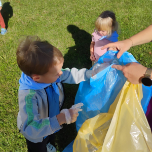 Nasze przedszkolaki z wielkim zaangażowaniem wzięły udział w Ogólnopolskiej Akcji „Sprzątanie Świata”. Wyposażone w rękawiczki i worki, ruszyły, by zadbać o czystość najbliższego otoczenia.
